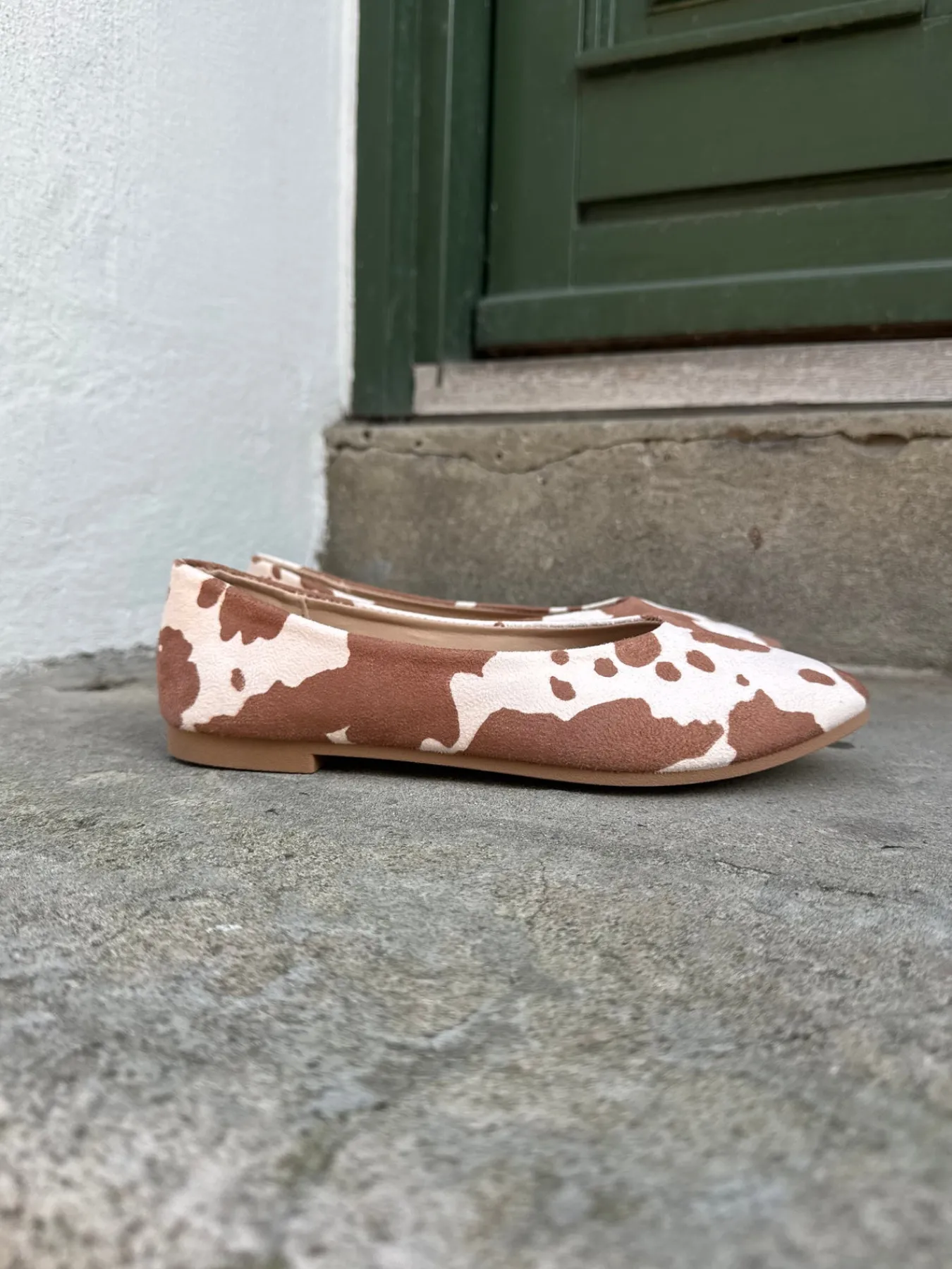Vores Milla ballerinaer er behagelige at have på og i det fineste ko-print.