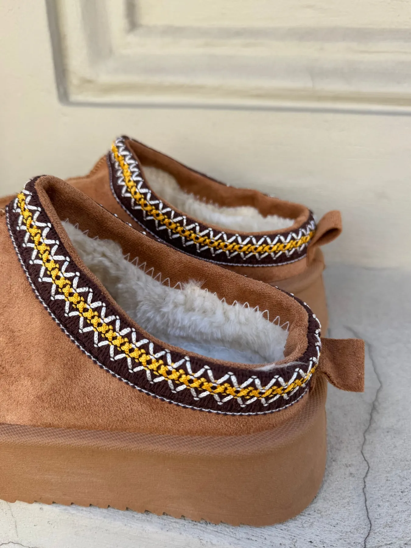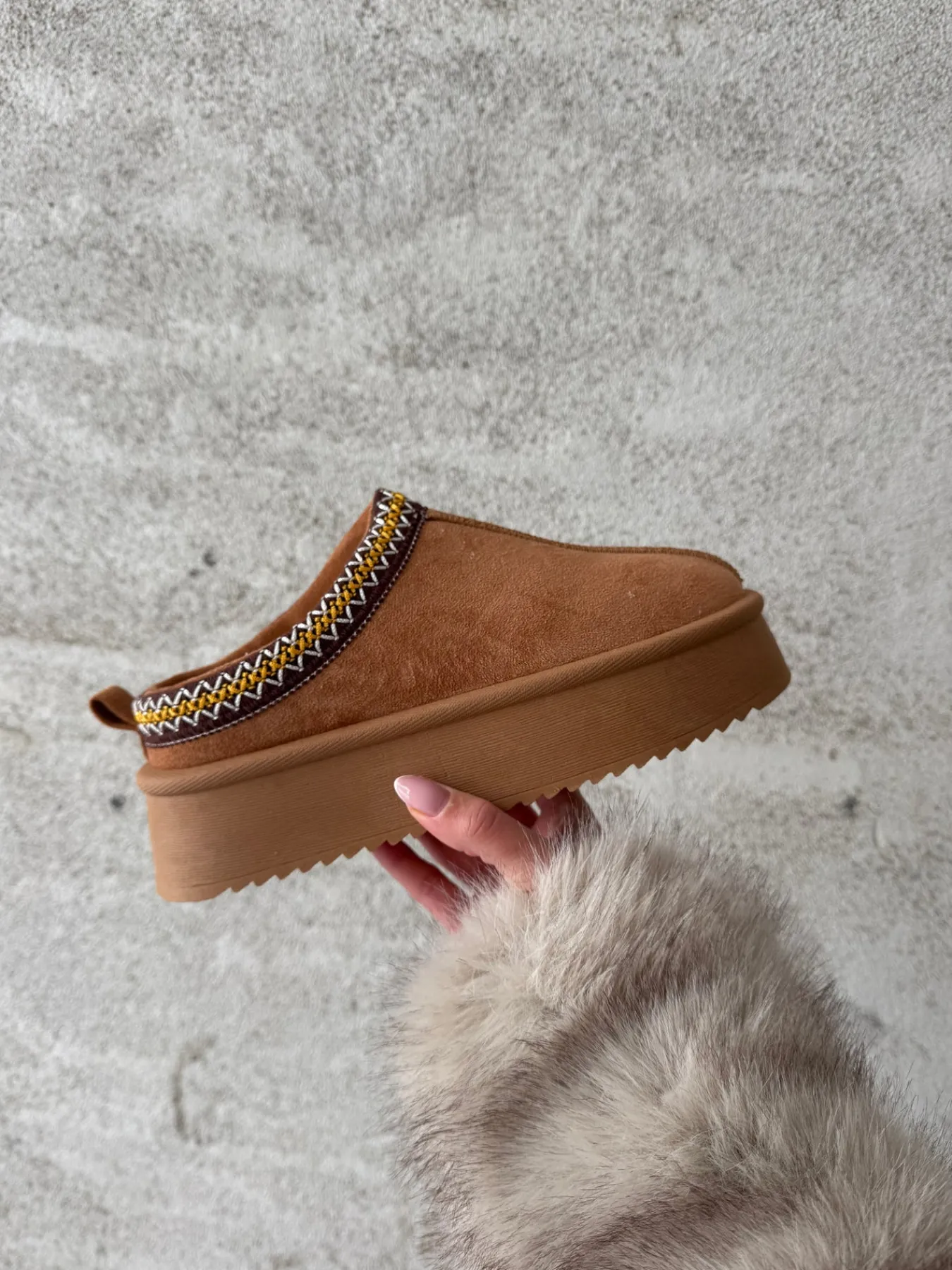 Vores Frida bamsesko har en chunky sål og er dejligt varme og bløde at have på!