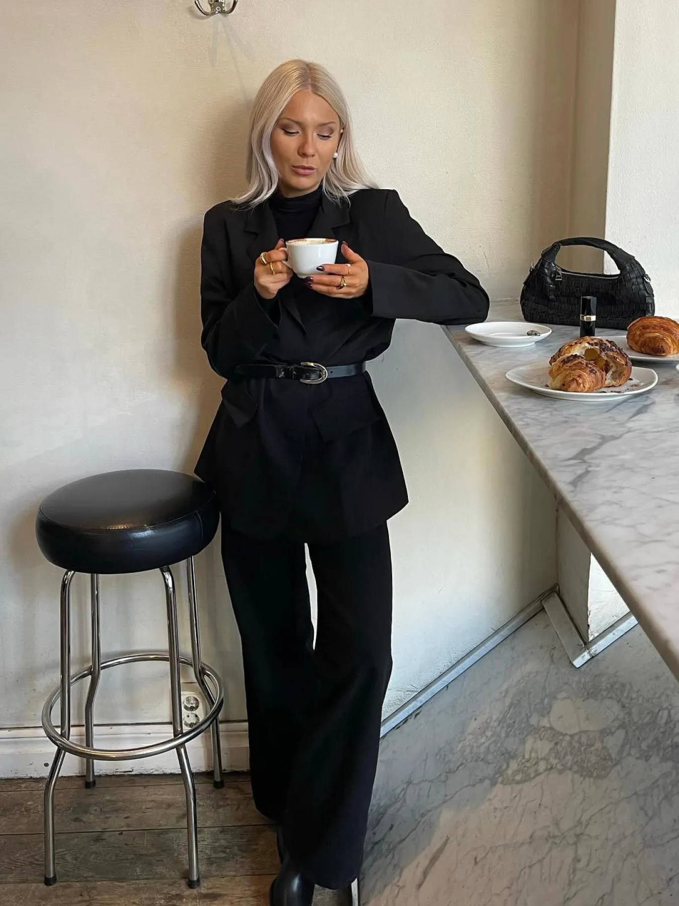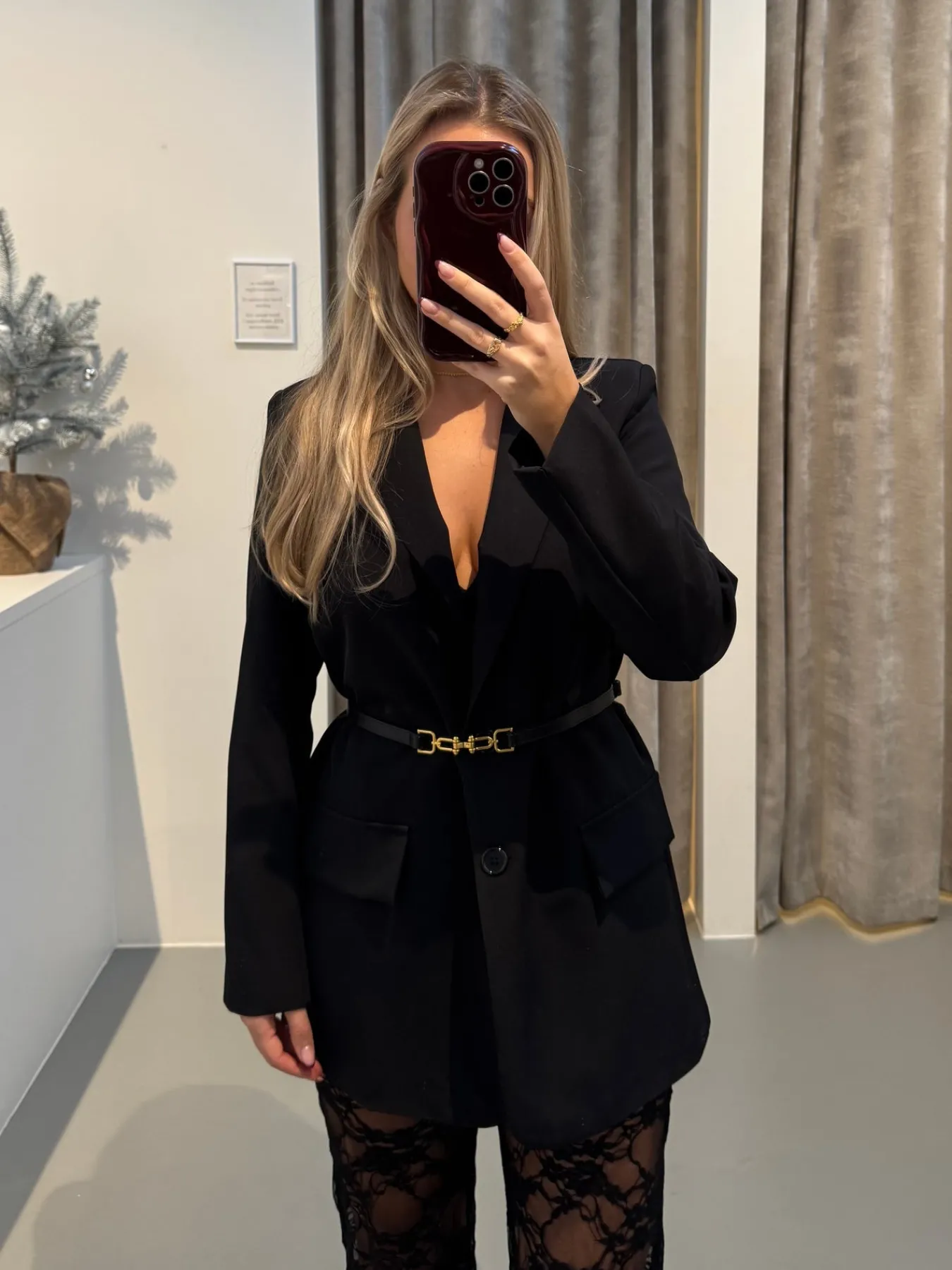 Klassisk sort blazer med knapper foran og visuelle lommer. Passer perfekt til hverdag og fest.