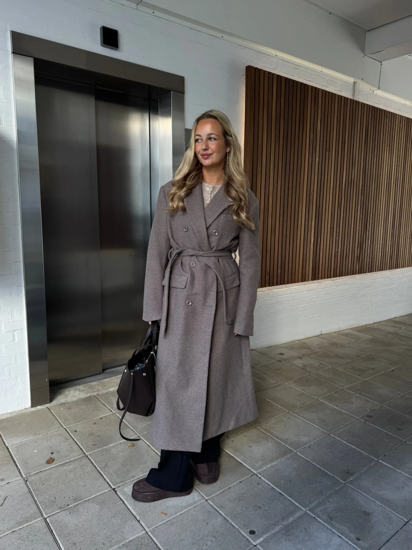Valeria trenchcoaten har både bælte og knapper. Den er lang og helt perfekt til efterår og vinter. Den har en v-udskæring og et oversized look.