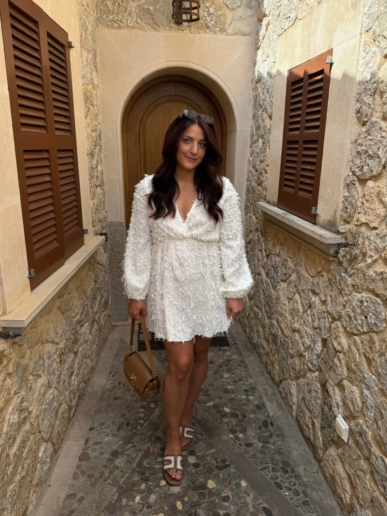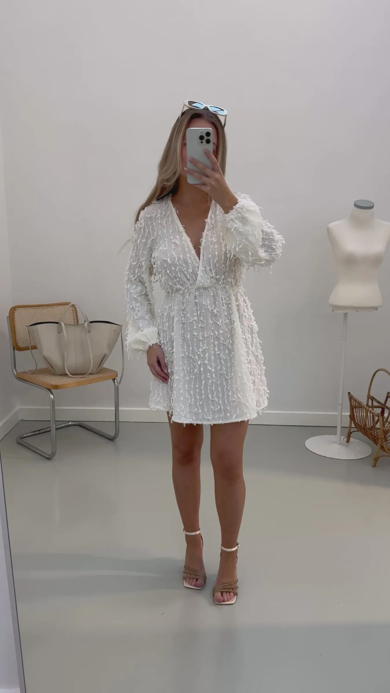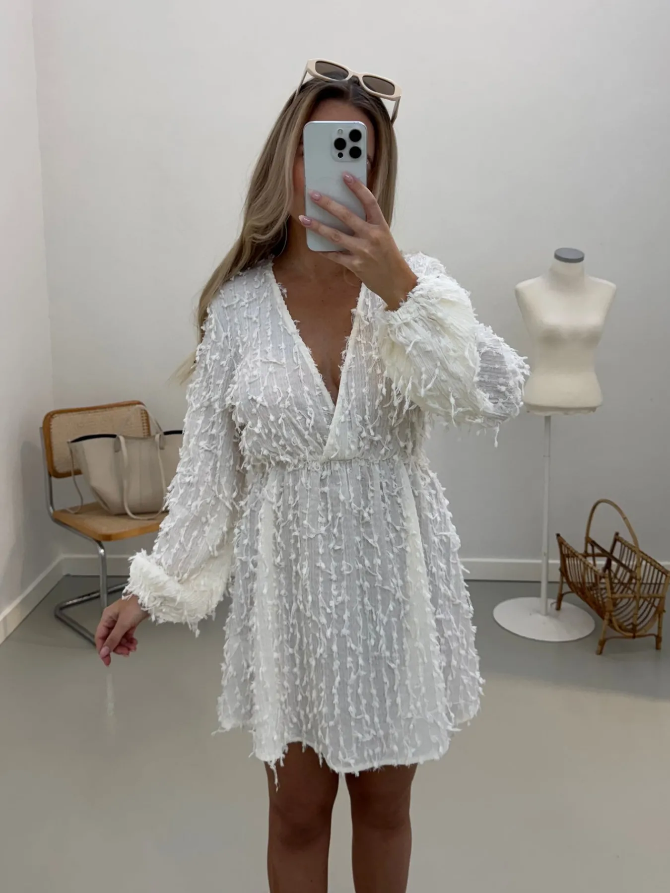 Sofie kjolen er perfekt til studenterfesterne og alle sommerfesterne. Den har ruffels i stoffet og ballon ærmer. Den har en dyb v-udskæring.