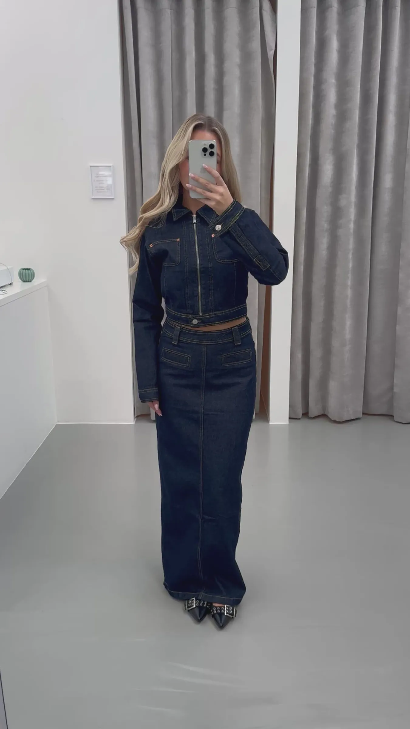 Vega nederdelen er lang og har en slids bagtil, så du kan gå iden. Den er perfekt sammen med Vega jakken.