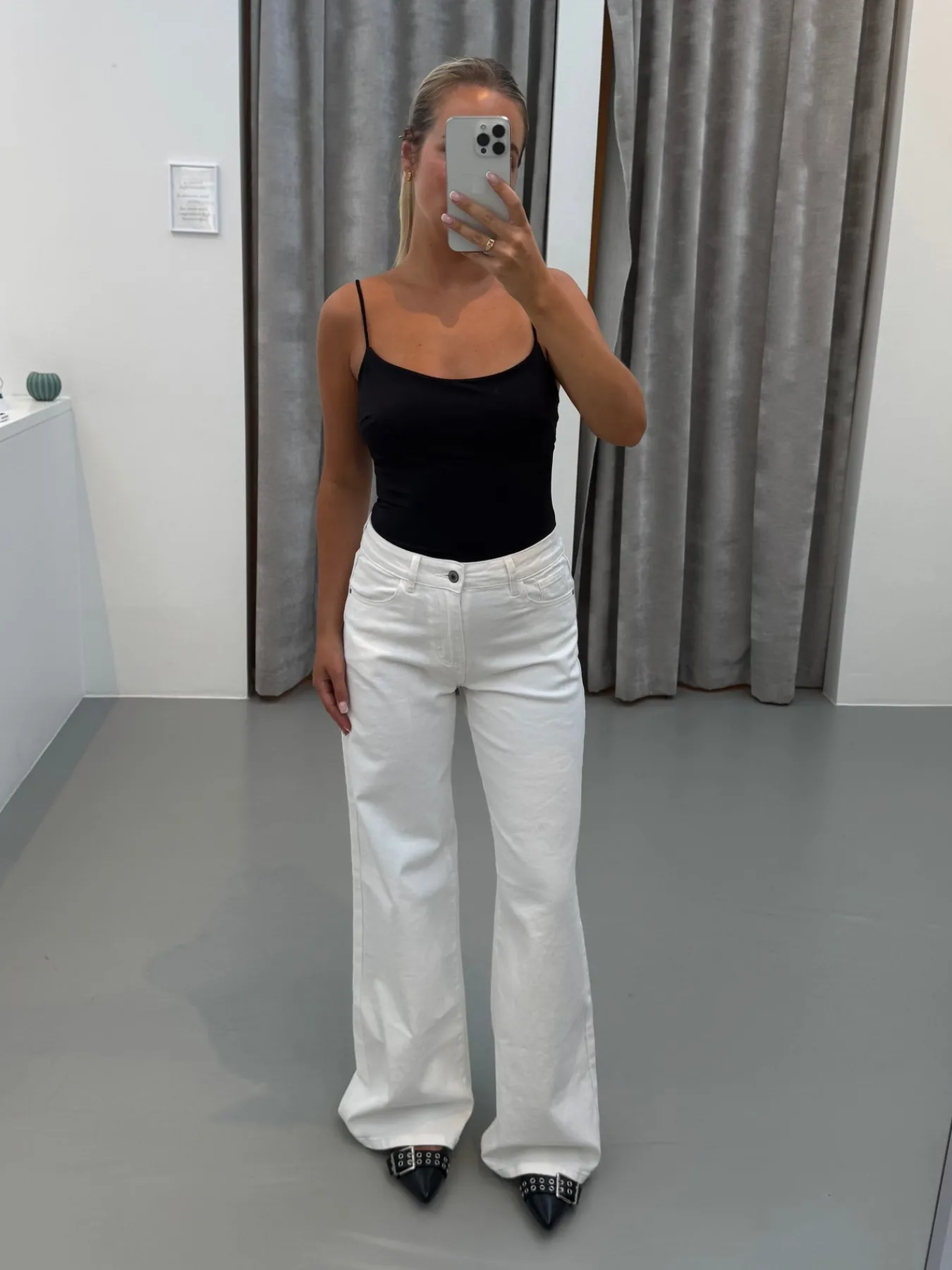 Vores Laura jeans har brede ben og er strækbare. Bukserne har et løst fit og kan bruges hele året.