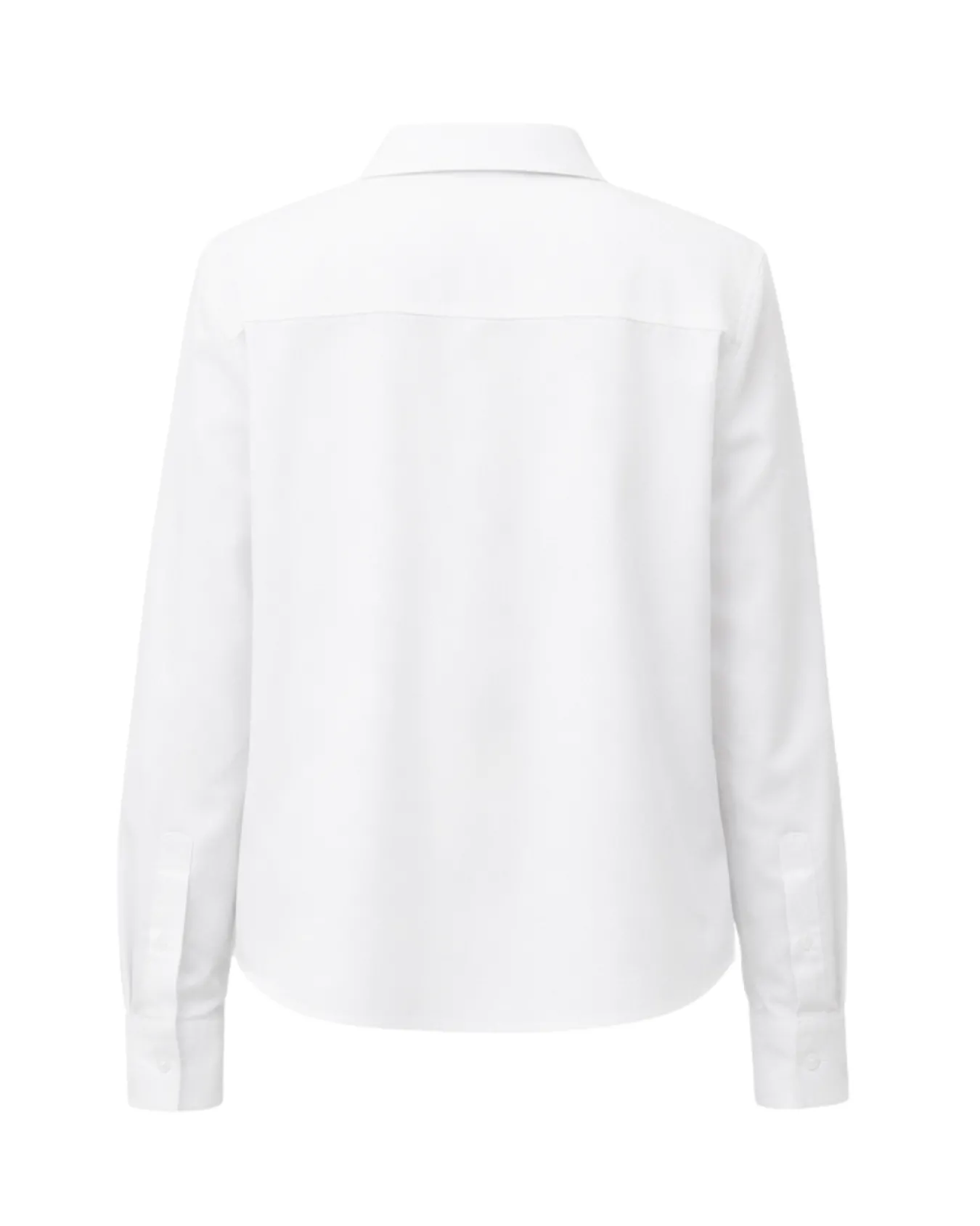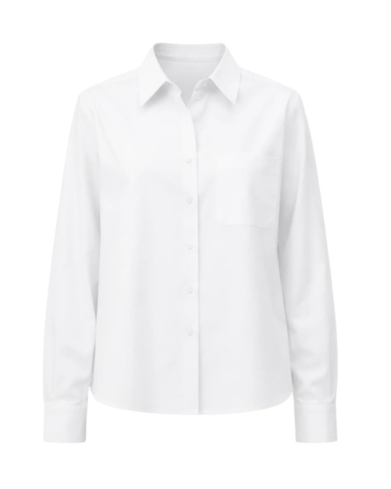 Denne hvid skjorte har et klassisk, let løstsiddende snit, der giver et moderne og elegant udtryk. Skjorten er cropped boxy fit. Det rene design sikrer en flot pasform med god bevægelsesfrihed, mens det lette og behagelige materiale gør skjorten ideel til både hverdag og arbejde. Den lyseblå farve gør den nem at style med jeans, bukser eller nederdel og skaber et tidløst look med et afslappet touch.