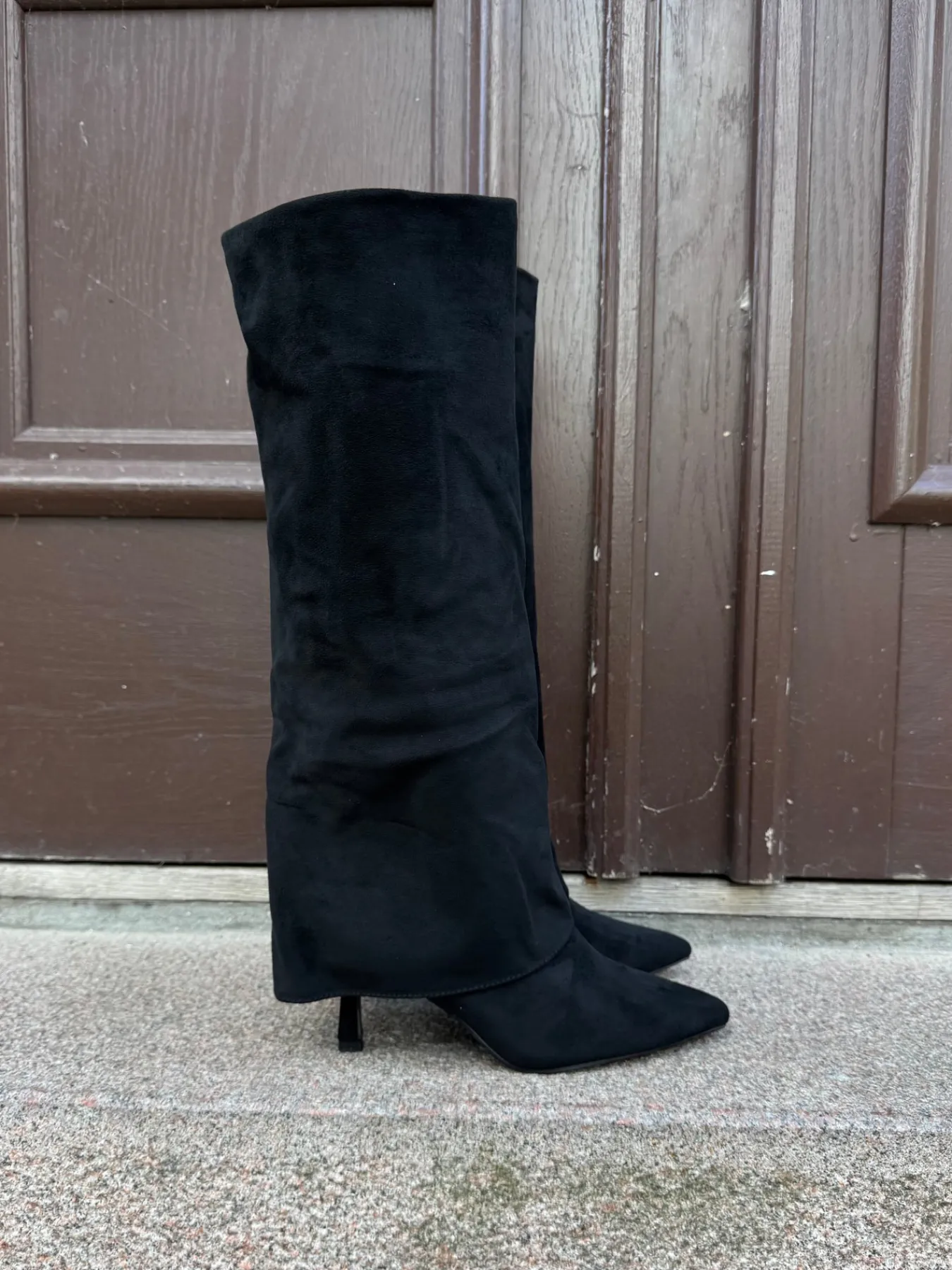Agnes støvlerne har en spids hæl. De har en fold over støvlen og en spids snude. De er perfekte til hverdag og festlige lejligheder.