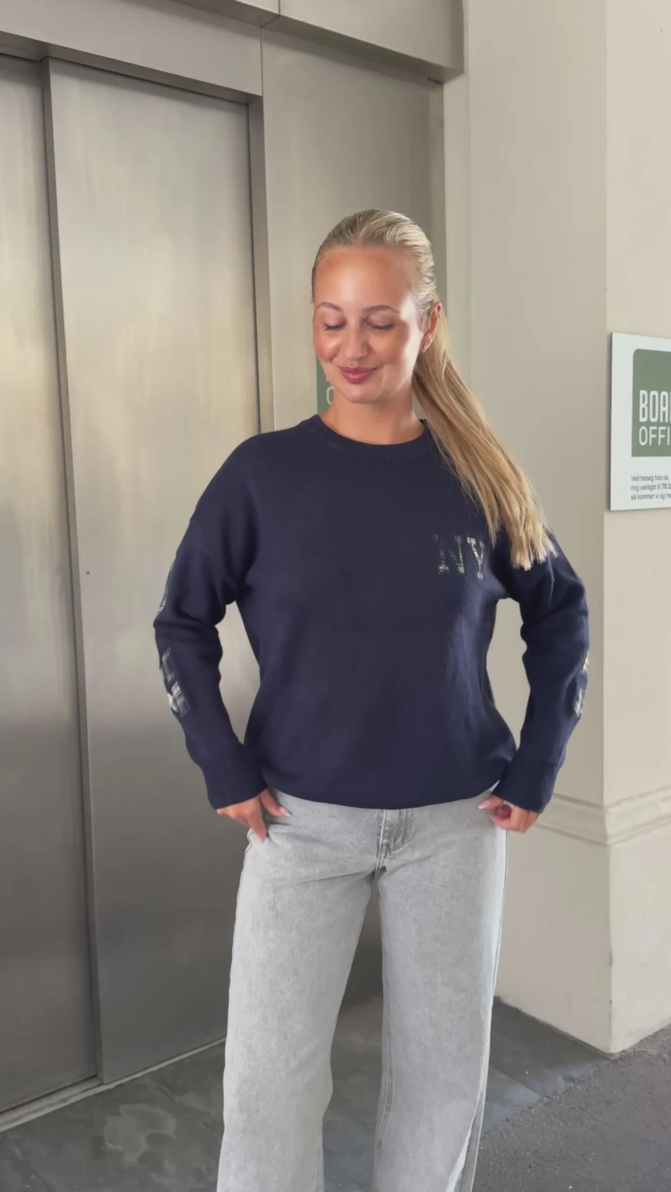 Victoria strikken har tryk på ryggen – den har et klassisk sweatshirt cut og er perfekt til efteråret og de kolde dage.
