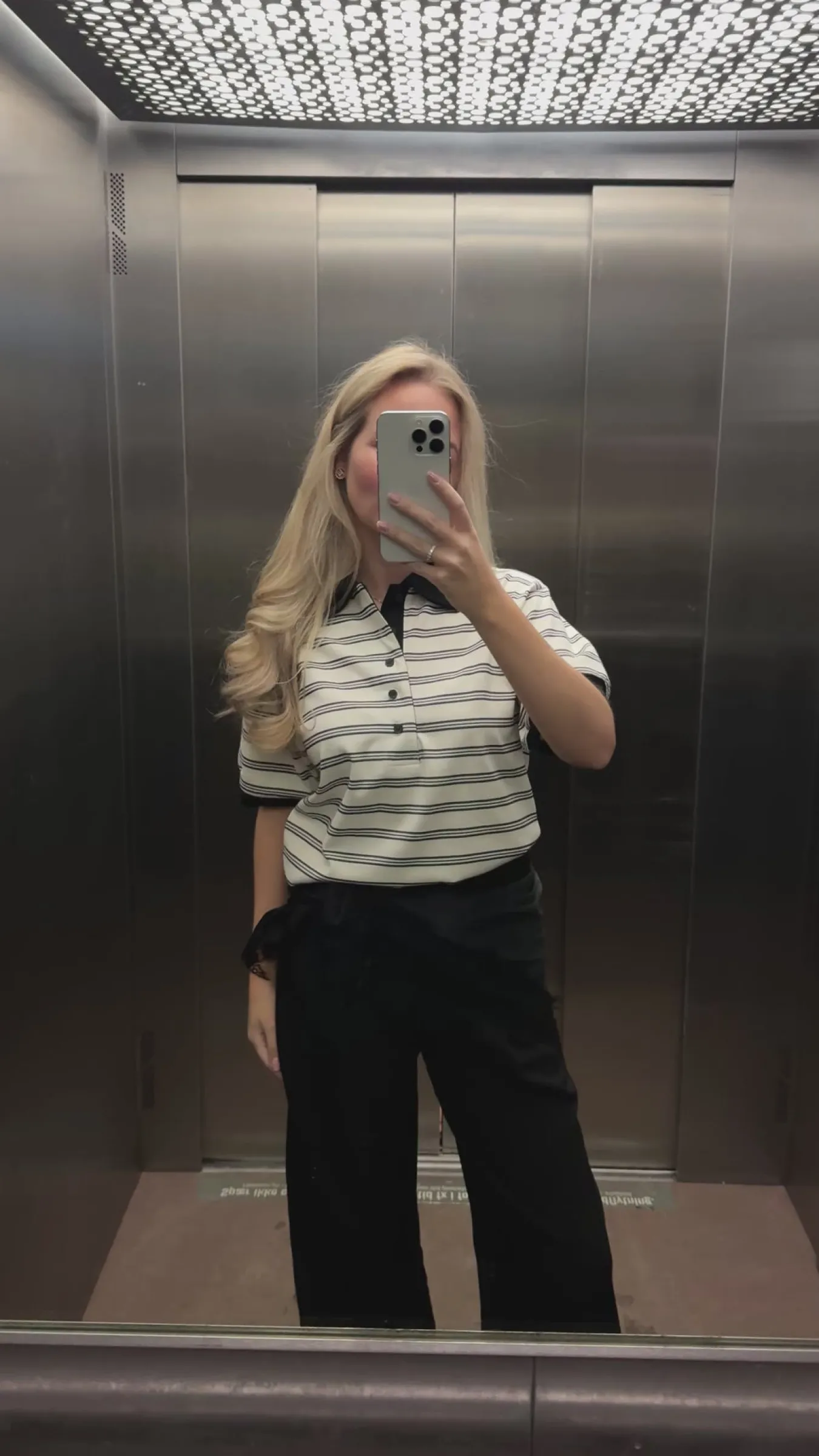 Denne stribede t-shirt skjorte har et klassisk og moderne udtryk med kontrastkrave og dekorativ knaplukning. Det let løstsiddende snit giver en behagelig pasform og god bevægelsesfrihed, mens det grafiske stribemønster tilfører et stilrent look. Skjorten er nem at style til både hverdag og arbejde og passer perfekt til både bukser og nederdel. Et tidløst valg med fokus på komfort og design.