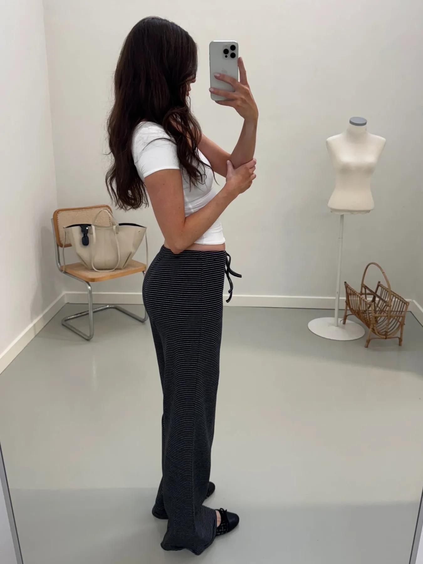 Vores Emma bukser er perfekte til både almindelig hverdag og afslapning. De er lange i benene og kan strammes ind med bindebånd i taljen. Bukserne er mid-rise.