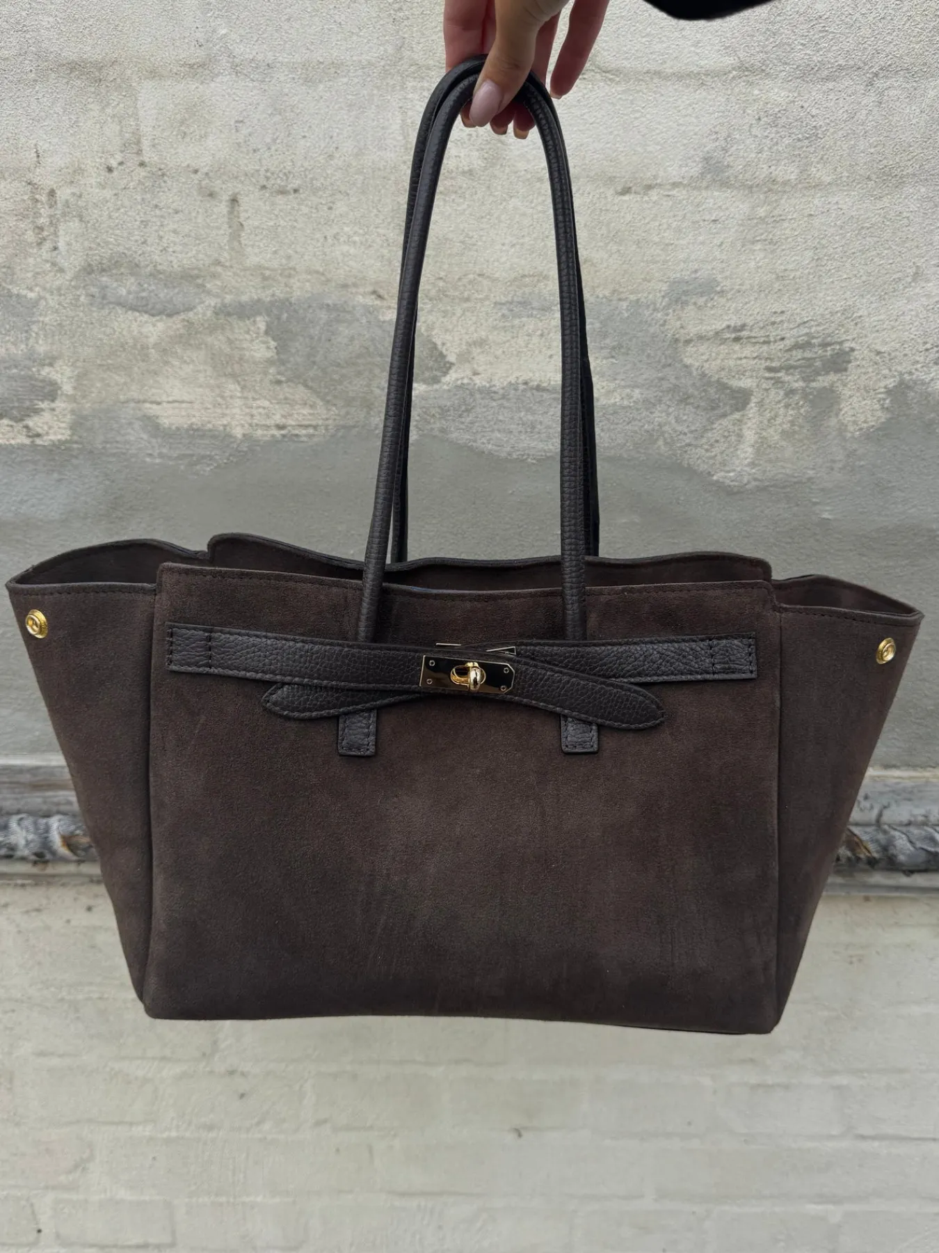Claire tasken har en lynlåslukning og kan indeholde alt du skal bruge i hverdagen. Tasken er lavet i ægte læder og ruskind.