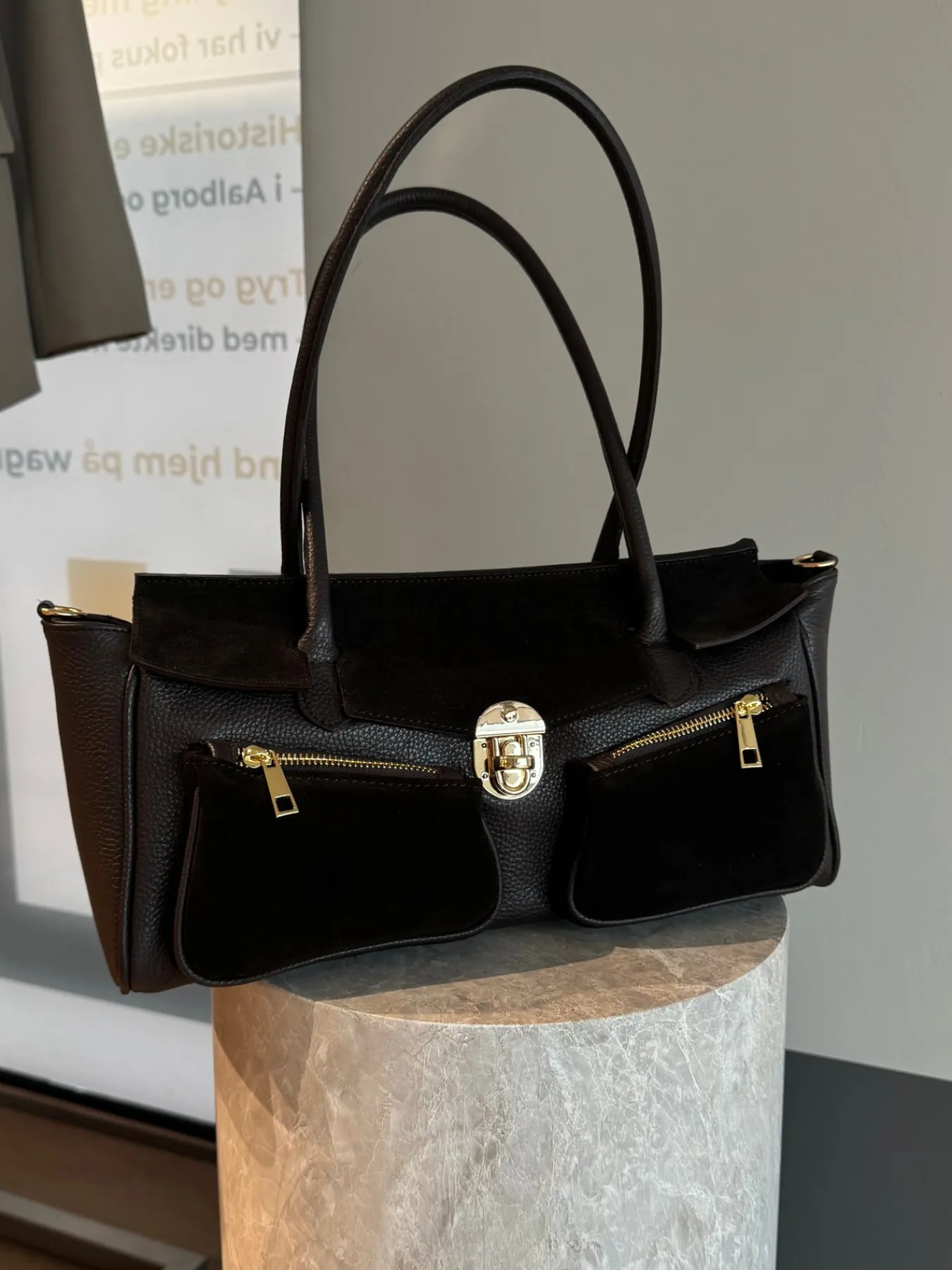 Natalie tasken har de fineste detaljer og lukkes fortil med en klip, den fine taske kommer med en ekstra rem, så du også kan sætte den på skulderen.