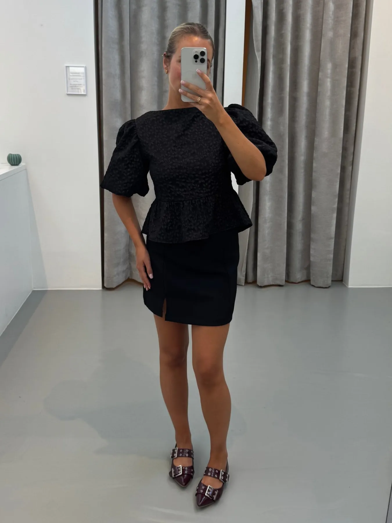 Elena blusen har de fineste puff-ærmer. Den bindes fortil og er den perfekte forårs bluse. Toppen kan vendes, så at du binder den på ryggen. Så giver den et klassisk og mindre åbent look.