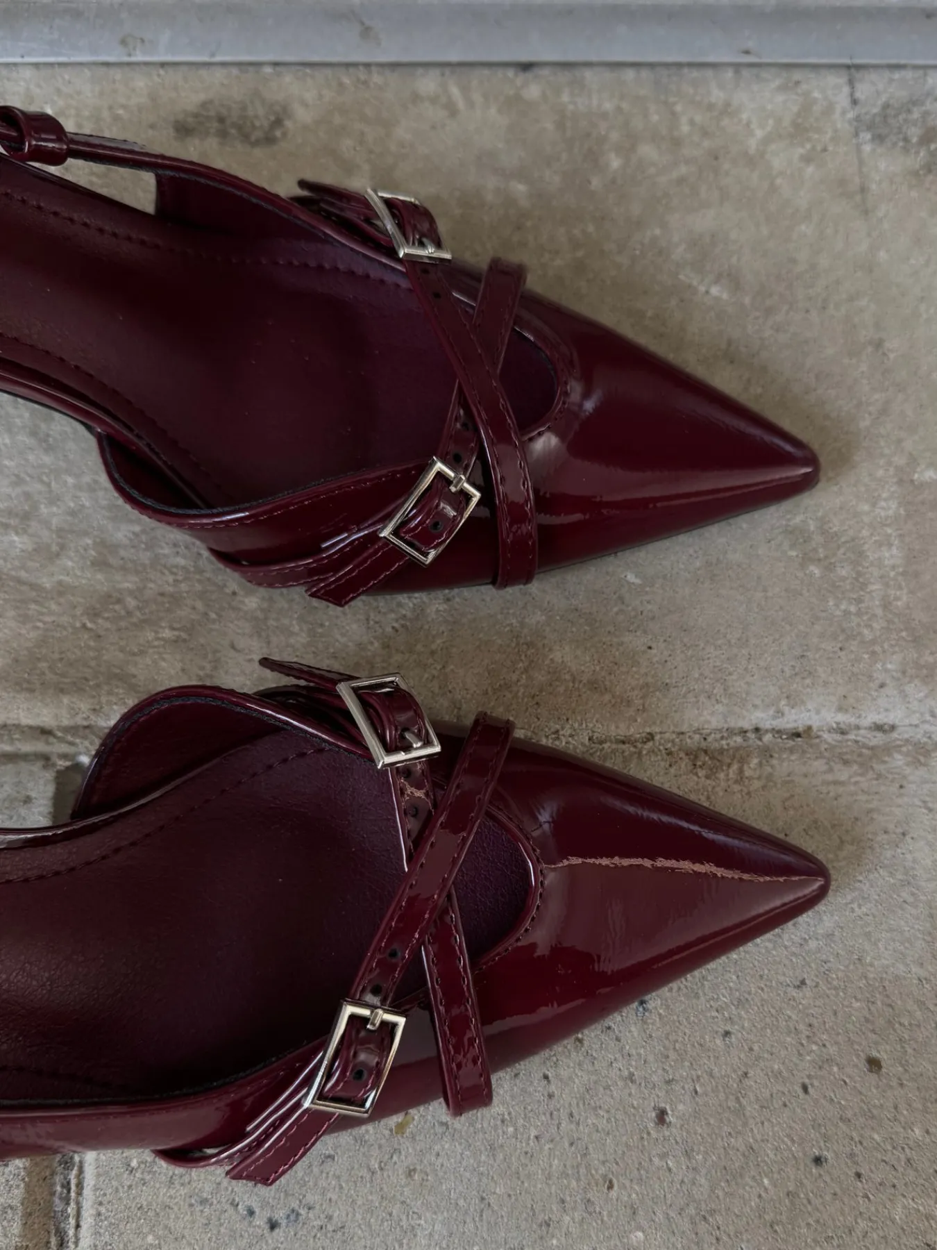 Flora stiletterne er perfekte til festlige begivenheder og kan også bruges til hverdag. Der er en justerbar rem omkring hælen, som kan justeres. der er to remme foran på stiletten som giver stiletten et råt look.