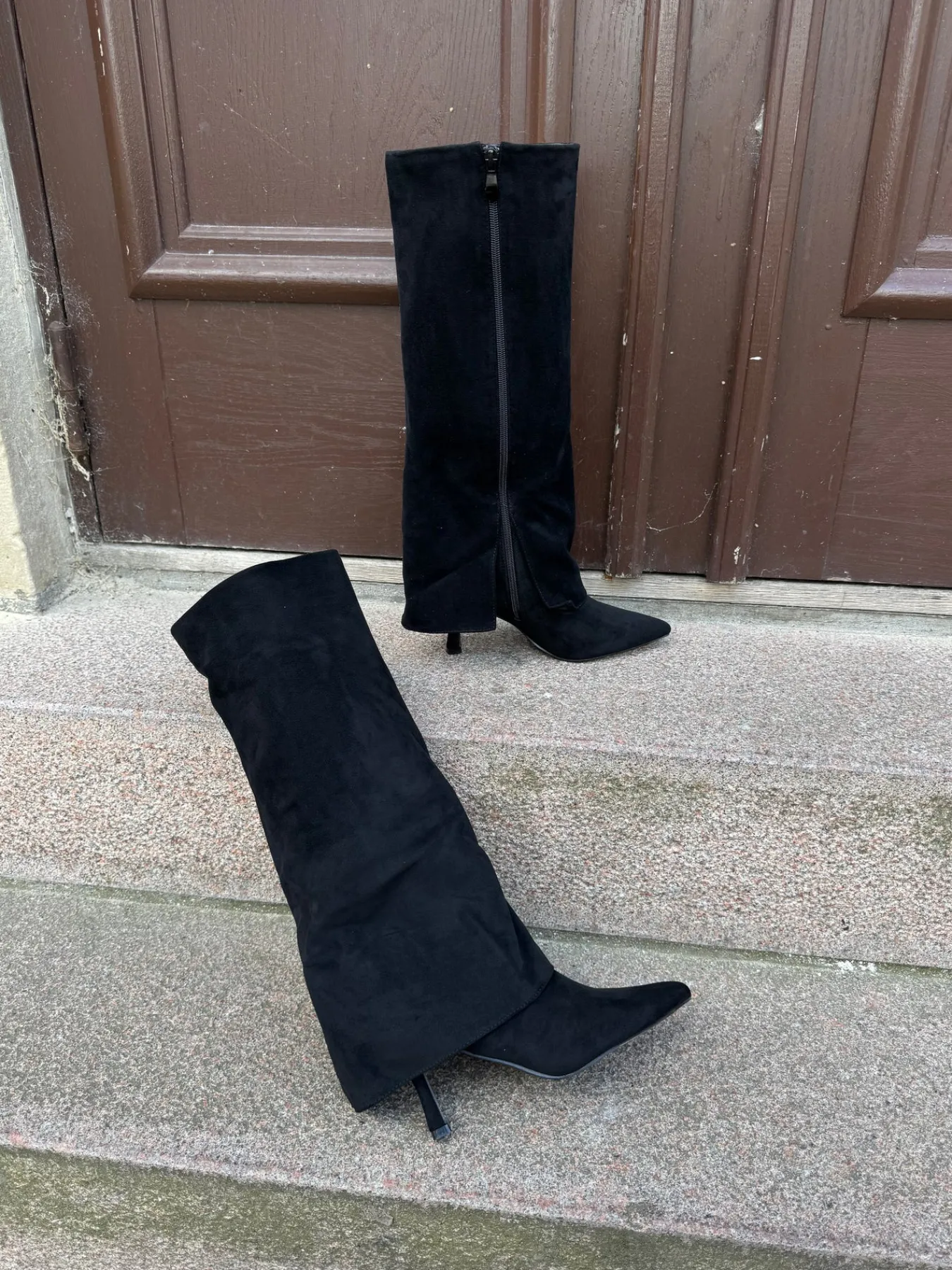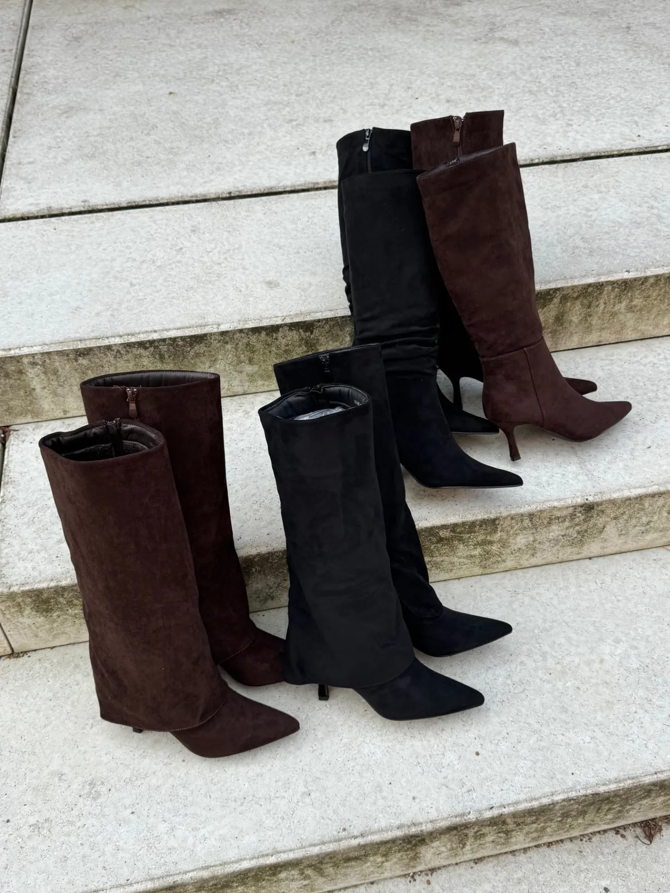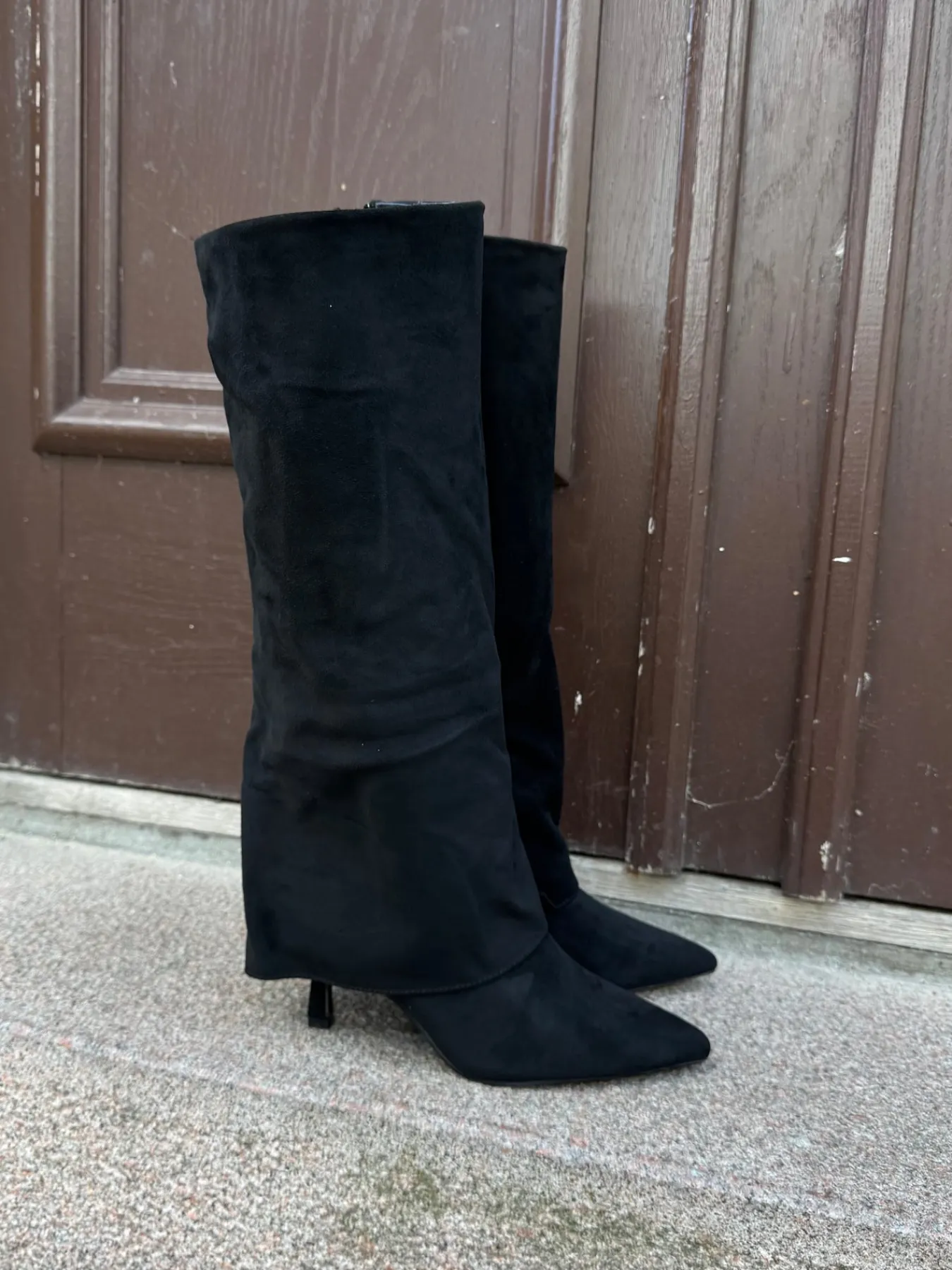Agnes støvlerne har en spids hæl. De har en fold over støvlen og en spids snude. De er perfekte til hverdag og festlige lejligheder.