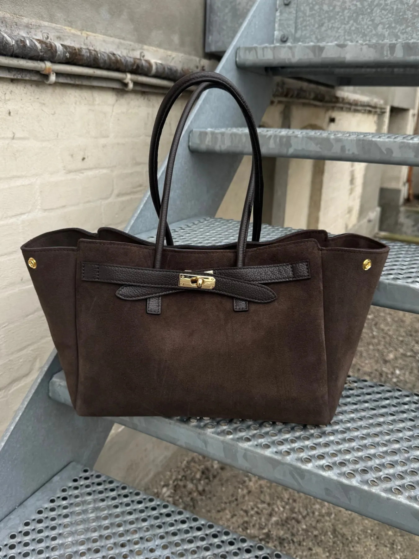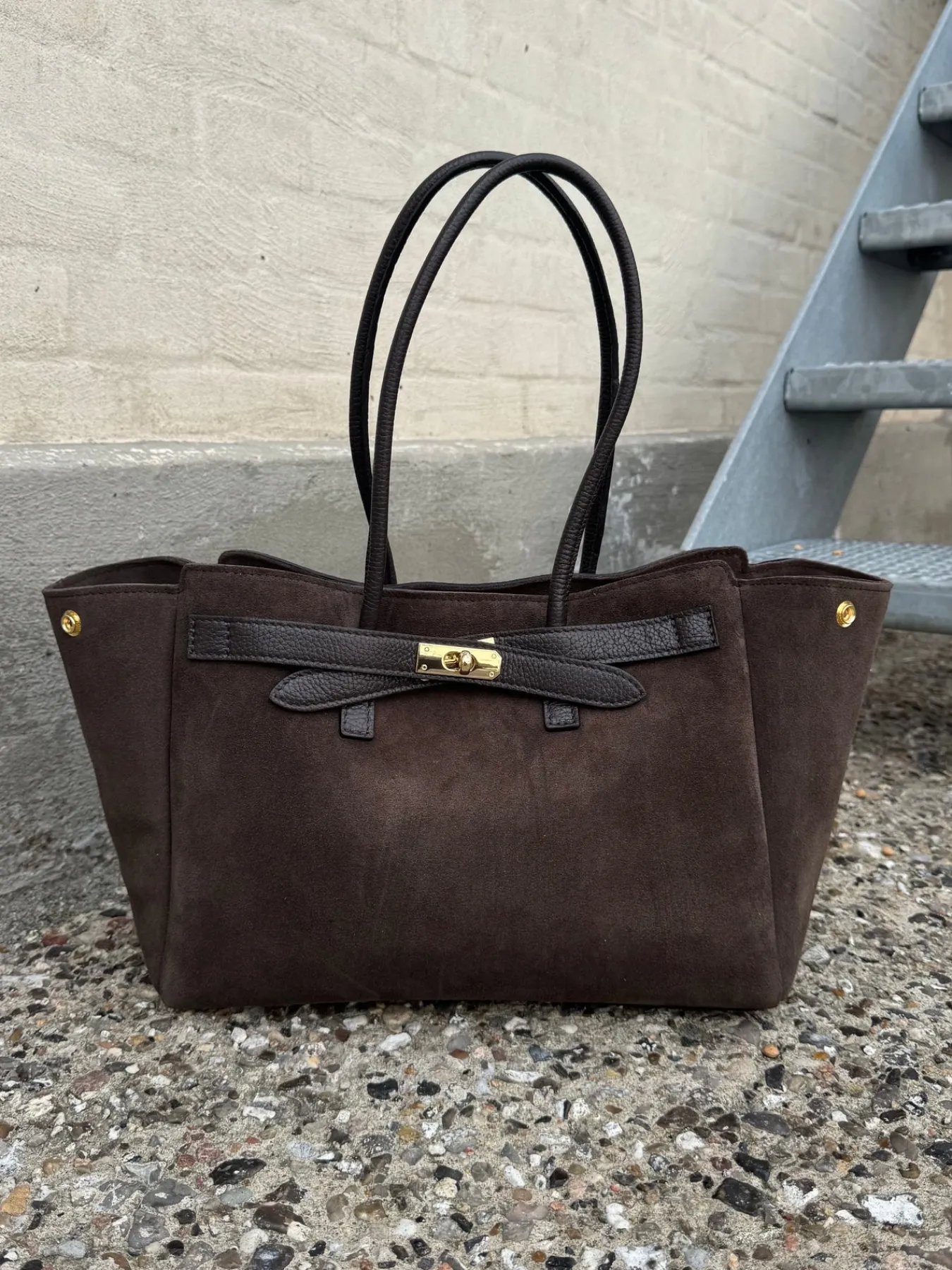 Claire tasken har en lynlåslukning og kan indeholde alt du skal bruge i hverdagen. Tasken er lavet i ægte læder og ruskind.