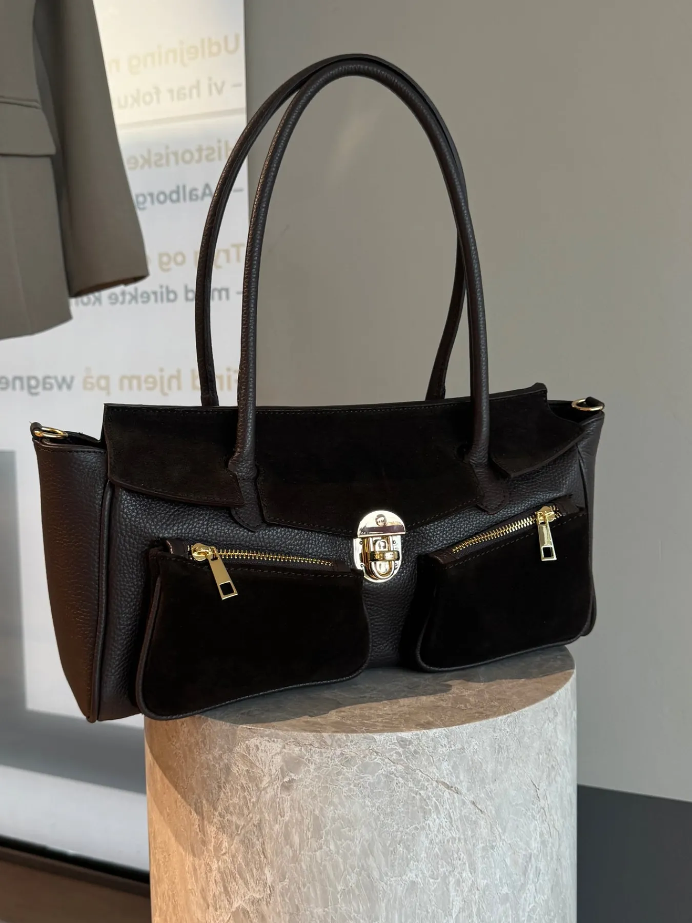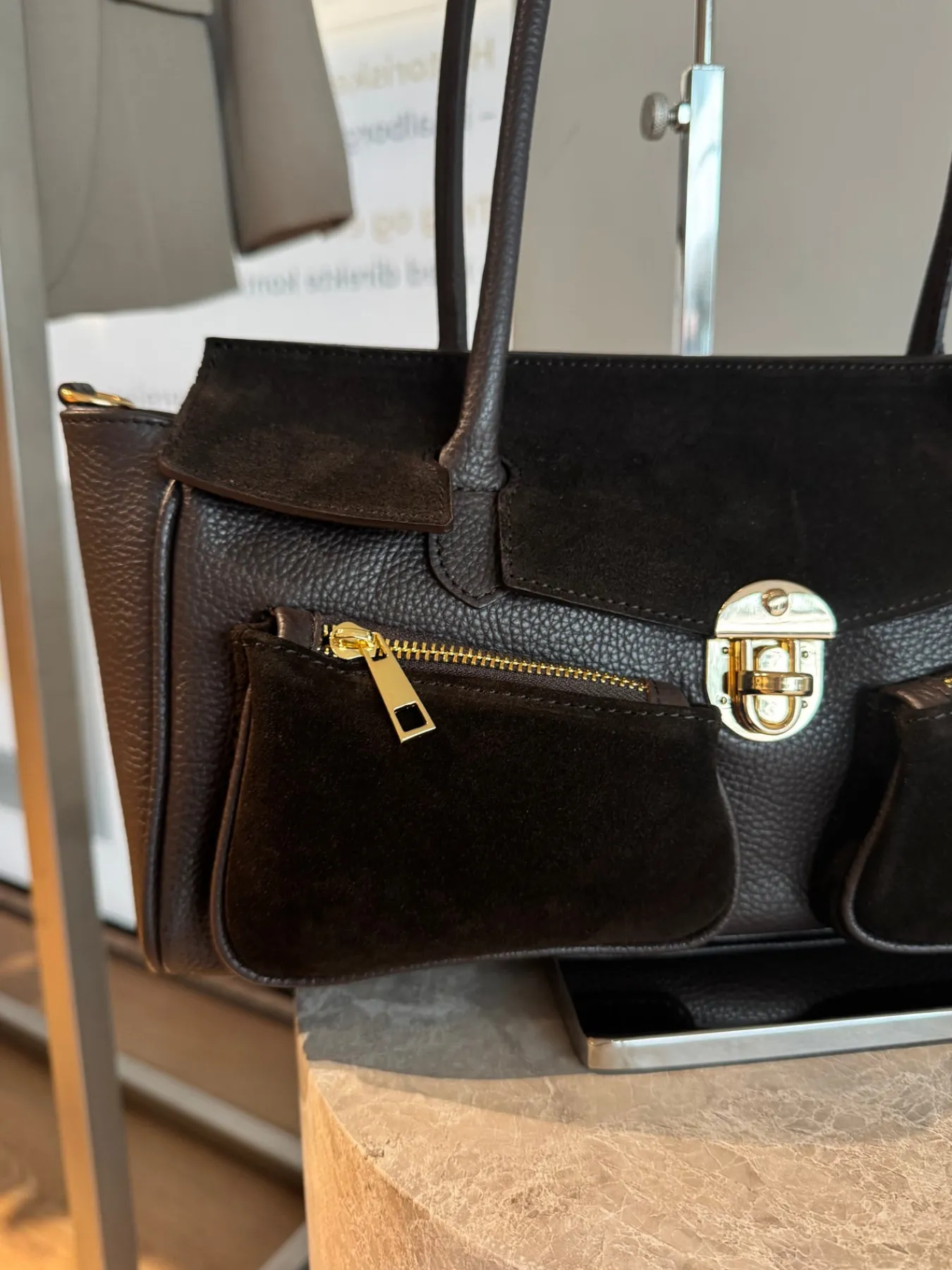 Natalie tasken har de fineste detaljer og lukkes fortil med en klip, den fine taske kommer med en ekstra rem, så du også kan sætte den på skulderen.