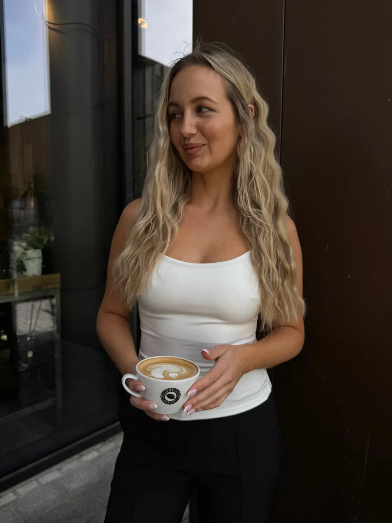 Anne toppen har de fineste spaghetti stropper. Den har en dyb udskæring og er perfekt til sommeren.
