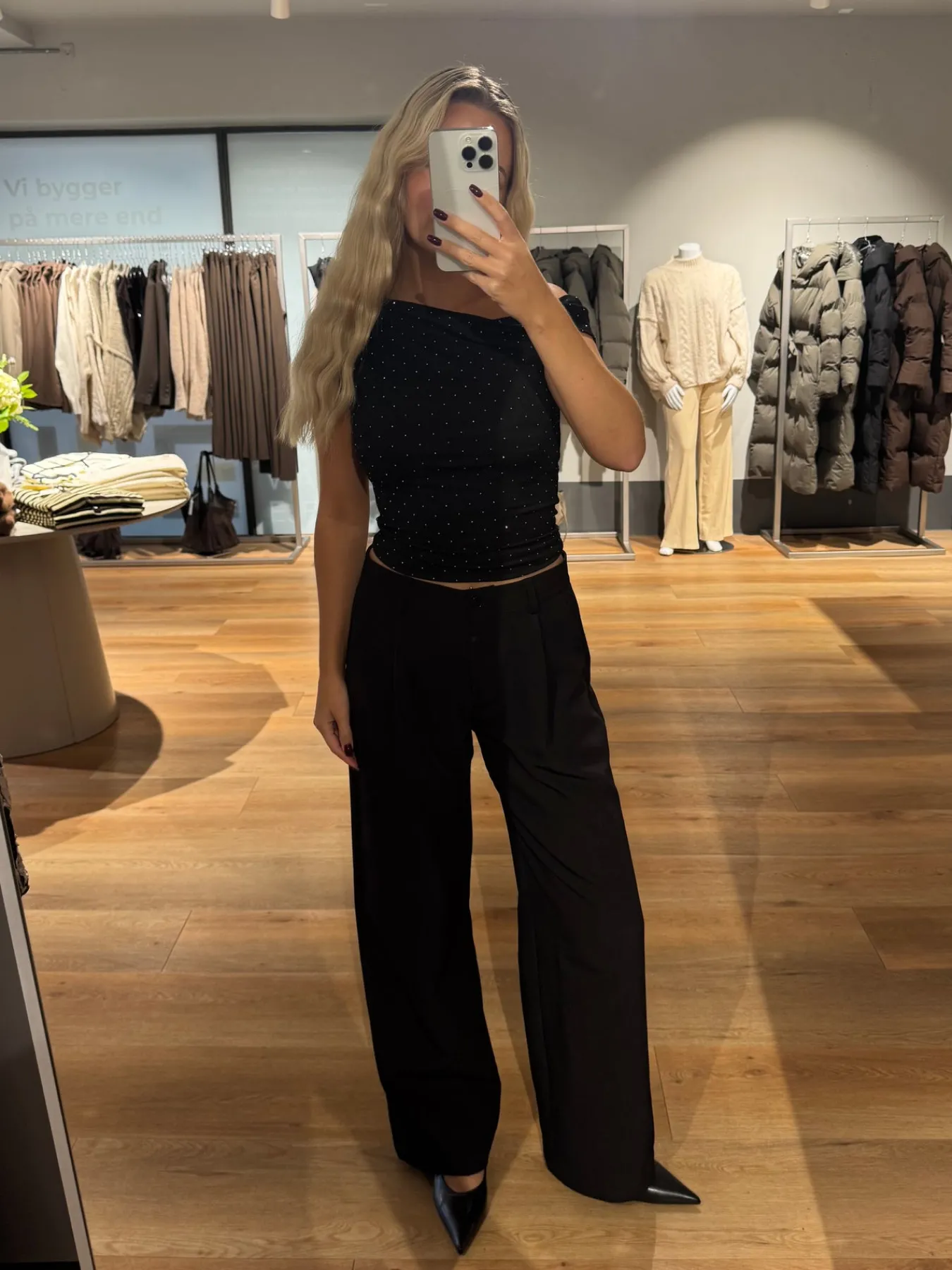 Den fine Lucy har de smukkeste sten og en drop shoulder. Toppen er tætsiddende og fremhæver figuren.